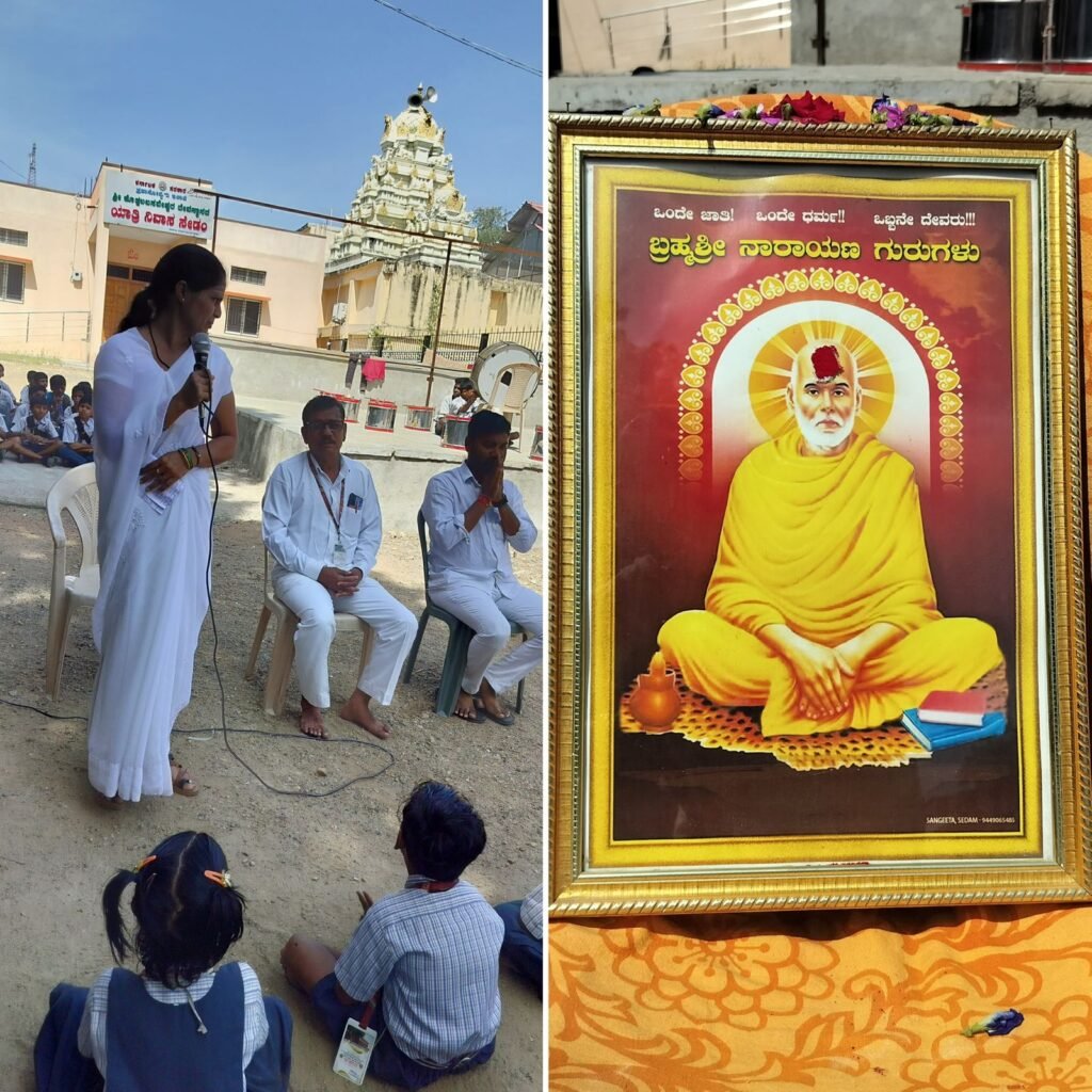 ಶ್ರೀ ನಾರಾಯಣ ಗುರೂಜಿ ರವರ ಜನ್ಮದಿನಾಚರಣೆ ಆಚರಿಸಲಾಯಿತು. ಶ್ರೀಮತಿ ತನುಜಾ ಮಾತಾಜಿ ಬೌಧಿಕ ಮಂಡಿಸಿದರು.